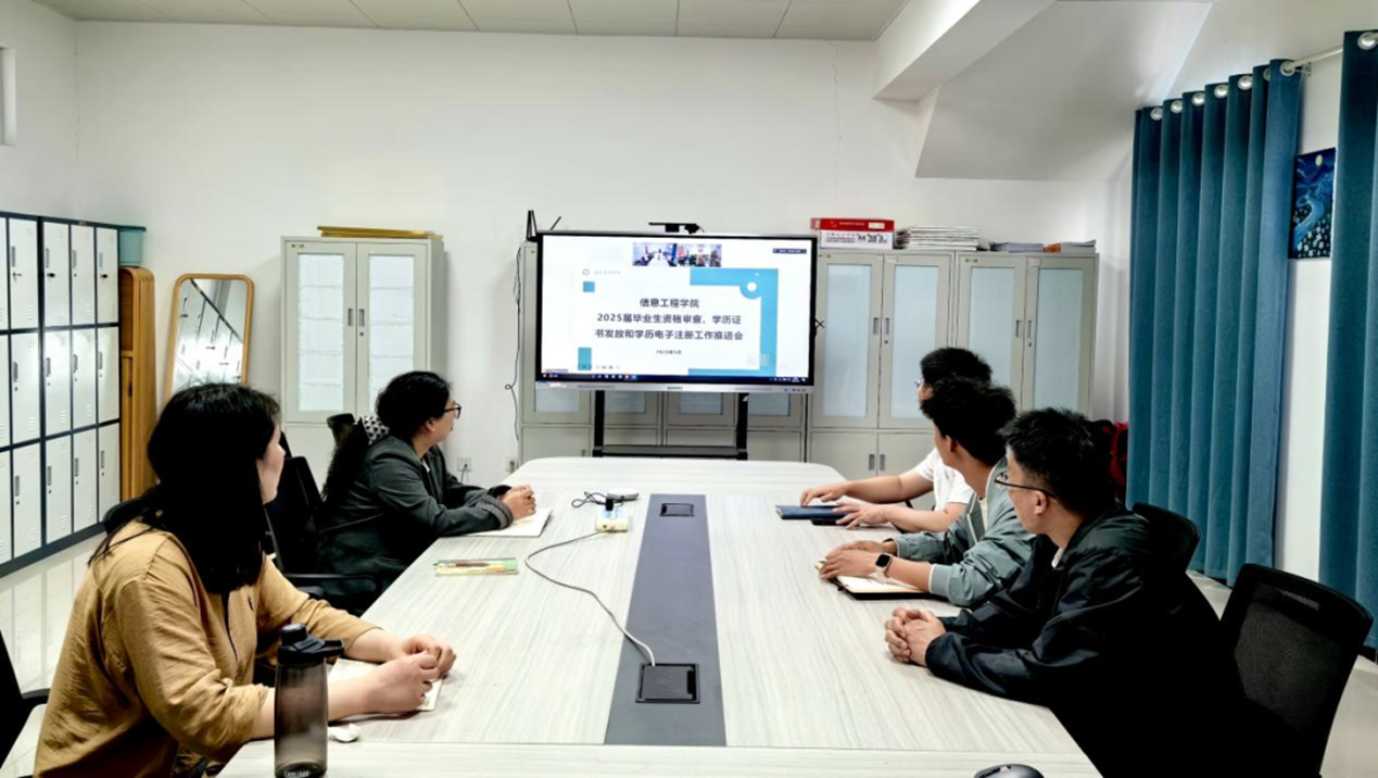 为深入贯彻落实教育部《普通高等学校学生管理规定》(第41号令)及学校相关文件精神,确保2025届毕业生资格审查工作精准高效推进,信息工程学院于5月8日以东西校区视频连线方式召开专题工作推进会。学院党总支书记崔琳、副书记蒋欣哲、学工办主任常昆、团总支书记冷月及全体毕业班辅导员参加会议。