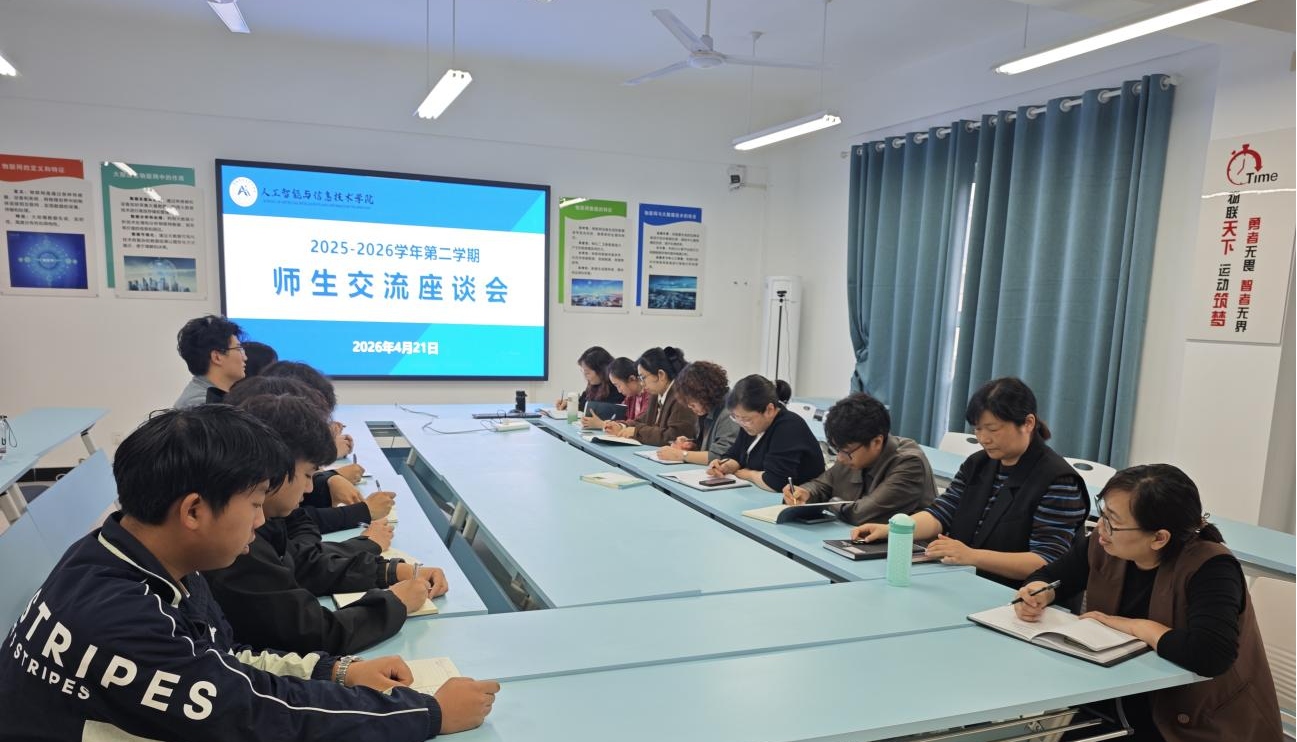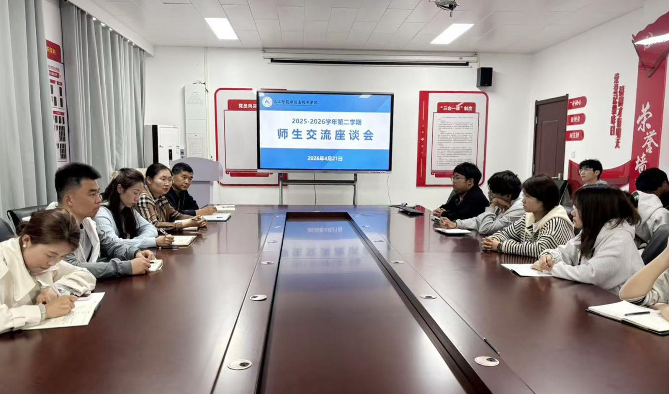 为持续深化教育教学改革,优化育人服务体系,切实倾听学生心声,2026年4月21日,人工智能与信息技术学院在东、西校区同步举办师生座谈会。教学办公室全体成员及学生代表参加座谈会。座谈会由学院副院长夏丽珍主持。