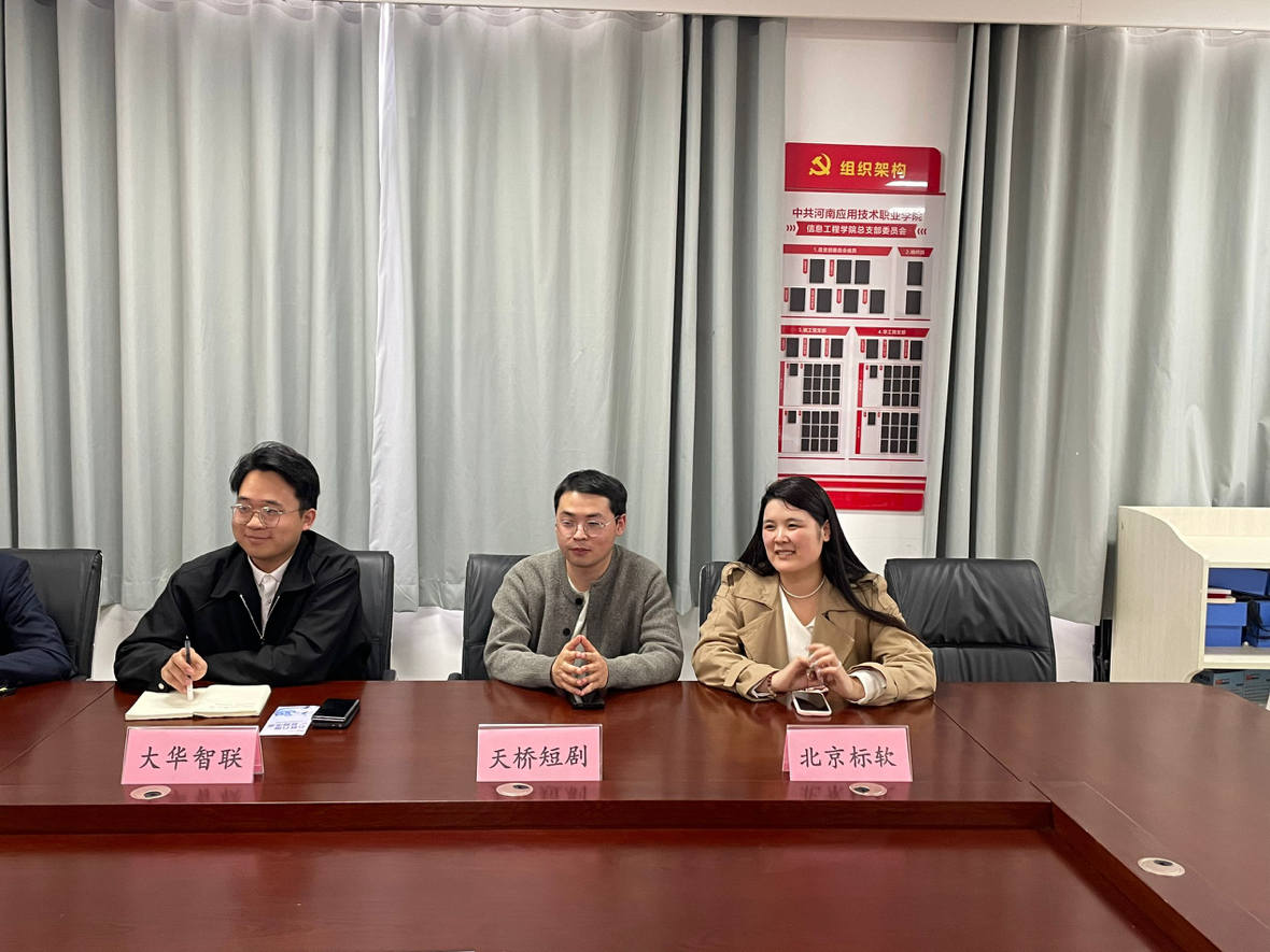为深化产教融合、推进校企协同育人,搭建人才培养与就业对接桥梁,4月7日,大华智联、创意无忧、天马芜湖等七家企业代表莅临人工智能与信息技术学院开展交流洽谈,双方围绕后续宣讲会、招聘会、订单班建设、校企合作等事宜开展沟通交流。学院相关领导及教师参加座谈会 。
