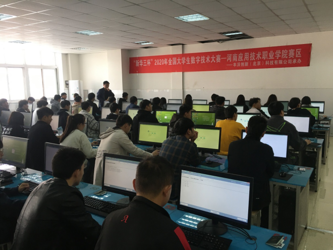11月14日,2020年“新华三杯”全国大学生数字技术大赛预赛在河南应用技术职业学院西校区实训楼拉开序幕。本届大赛由全国高等院校计算机基础教育研究会、 新华三集团联合主办,河南应用技术职业学院信息工程学院和丰沃创新(北京)科技有限公司协办。学校陈君丽副校长,教务处黄振中处长、王勇副处长,信息工程学院王雷院长、崔琳副院长莅临比赛现场指导赛事组织和赛事监理工作。