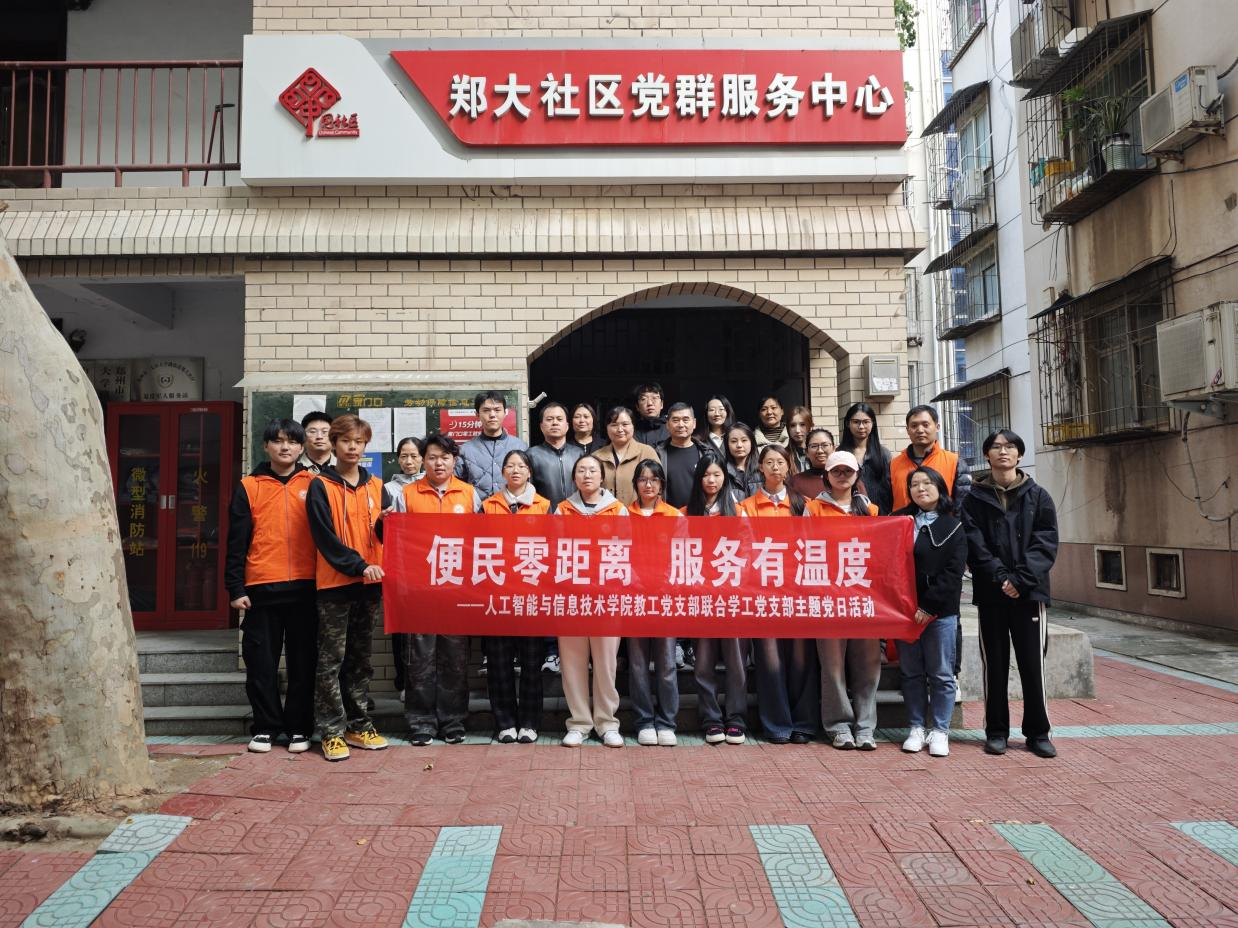 为深入贯彻落实习近平新时代中国特色社会主义思想,积极践行以人民为中心的发展思想,2025年10月28日,人工智能与信息技术学院教工党支部联合学工党支部赴郑州市郑大社区党群服务中心,开展“便民零距离 服务有温度”——“我为群众办实事”主题党日活动,通过证件照拍摄与家电维修两项服务,将专业能力转化为服务社区的温暖力量。