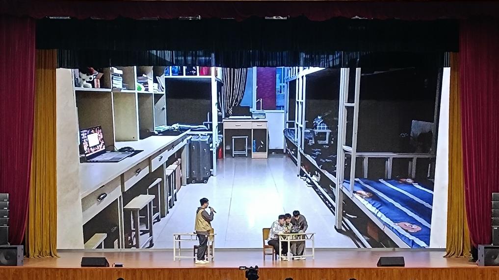 比赛现场,信息工程学院的演员们用精心的场景布置、熟练又深情投入的表演,给在场的评委和观众展示最完美的状态。剧目通过主角的情感宣泄来引起大家的共鸣,表现了友情、亲情、人格等主题,展示了同学们在大学生活中与恋人和室友的相处方式,告诉大家在大学生活中要摆正自己的思想,不能沉迷于游戏消遣中无法自拔。
