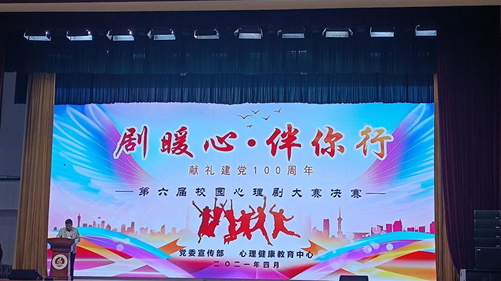 为隆重庆祝中国共产党成立100周年,进一步团结带领广大青年学习百年党史,坚定理想信念,凝聚青春力量,投身强国伟业,推动我校心理健康教育工作的开展,营造和谐的校园心理氛围。4月27日,由我院心理教育中心和党委宣传部共同举办的以“剧暖心伴你行·献礼建党100周年”为主题的第六届校园心理剧大赛在大礼堂隆重举行。